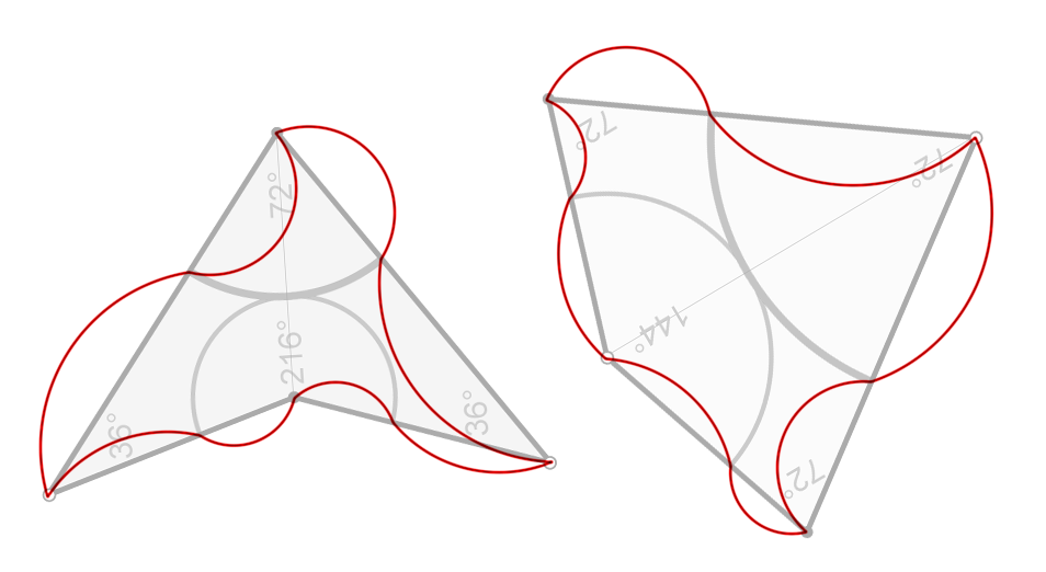 The diagram below shows how I modified the kites and darts by replacing their straight lines with circular arcs.