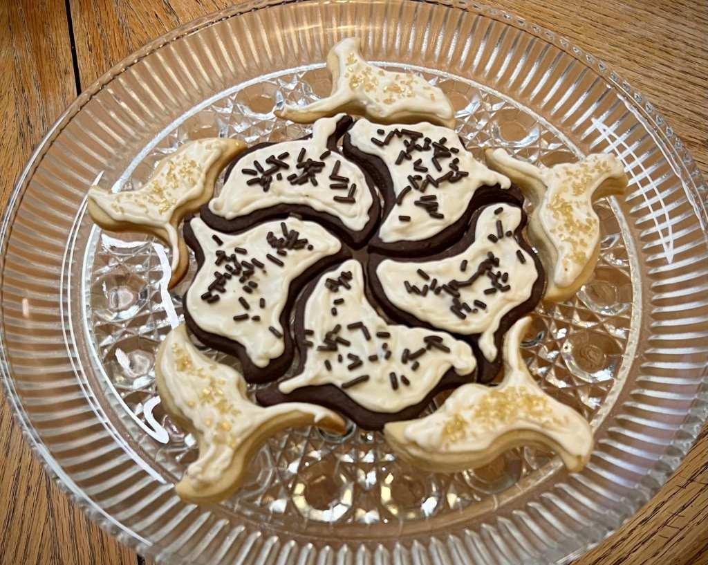 I found that the cat’s forepaw and the bird’s foot have a tendency to get a little stuck when the dough is soft (i.e., when it is close to room temperature). Be sure to cool your dough, and if you have trouble extricating these parts, a little flour dusting on the interior of the cutters can help.